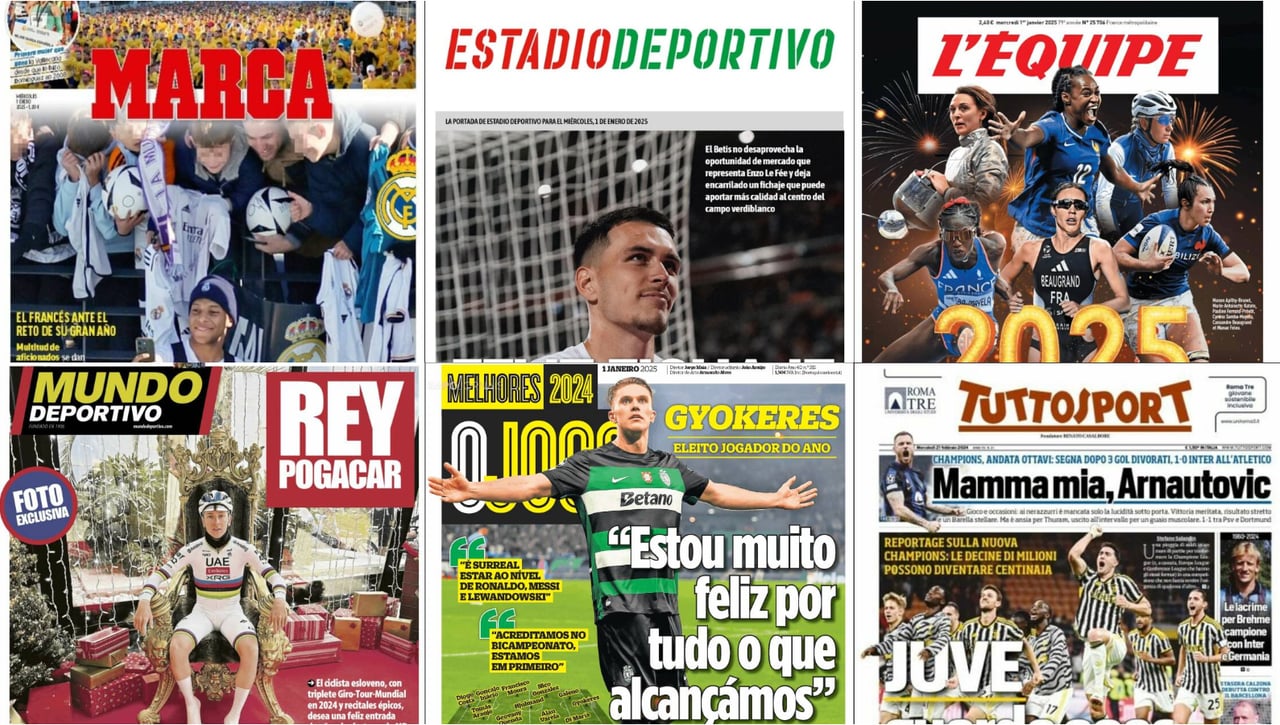 Ya en la prensa internacional, L'EQUIPE abre con sus principales estrellas del deporte femenino en Francia, al tiempo que TUTTO SPORT en Italia lo hace con un reportaje de la Juventus. Por último, O JOGO le ha dado el tema principal de su cabecera a una entrevista a Gyokeres, jugador del Sporting Club.