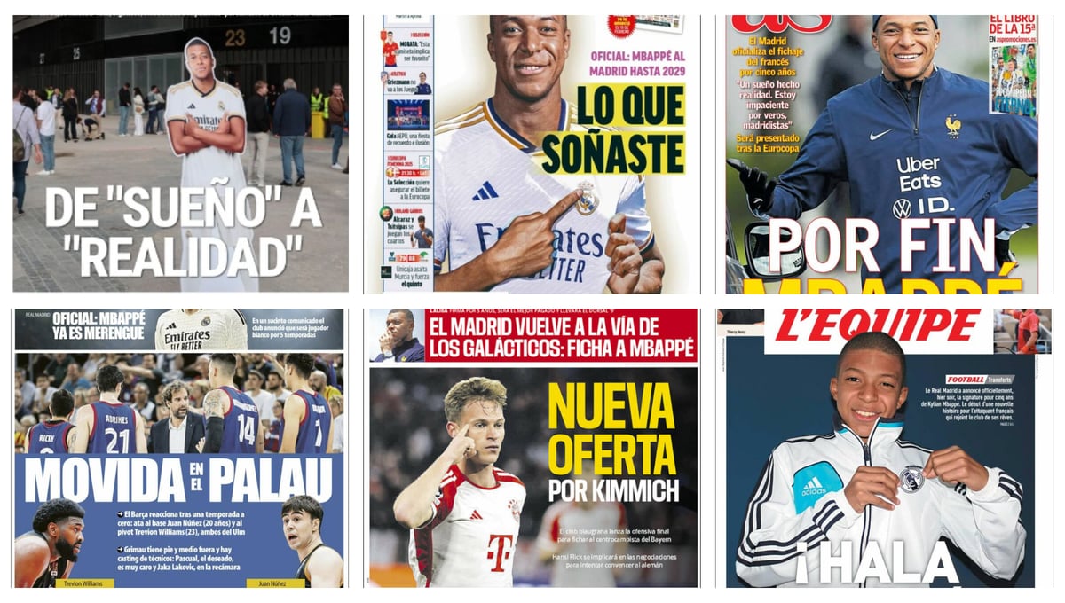 Como no podía ser de otro modo, la prensa de nuestro país se hace eco de la ‘noticia del siglo’. Marca ilustra la portada con montaje de Mbappé con la camiseta del Real Madrid señalando el escudo y un titular rotundo. “Lo que soñaste”. Además, recoge unas palabras del francés en las que asegura sentirse “orgulloso de formar parte del club de mis sueños”. Por último, el periódico destaca que Mbappé no estará en los Juego Olímpicos de París.