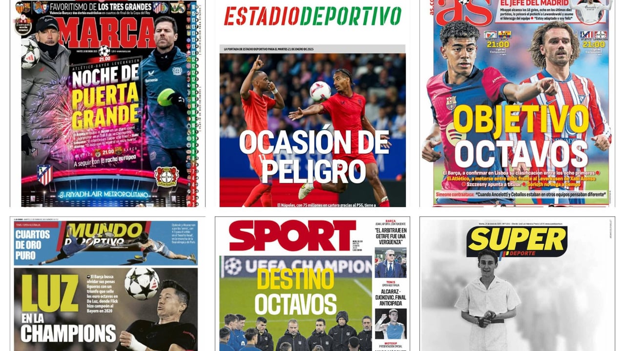 El Nápoles viene a por Lukebakio, Barcelona y Atlético de Madrid buscan los octavos de la Champions, Alcaraz se mide a Djokovic... Así vienen las portadas del 21 de enero