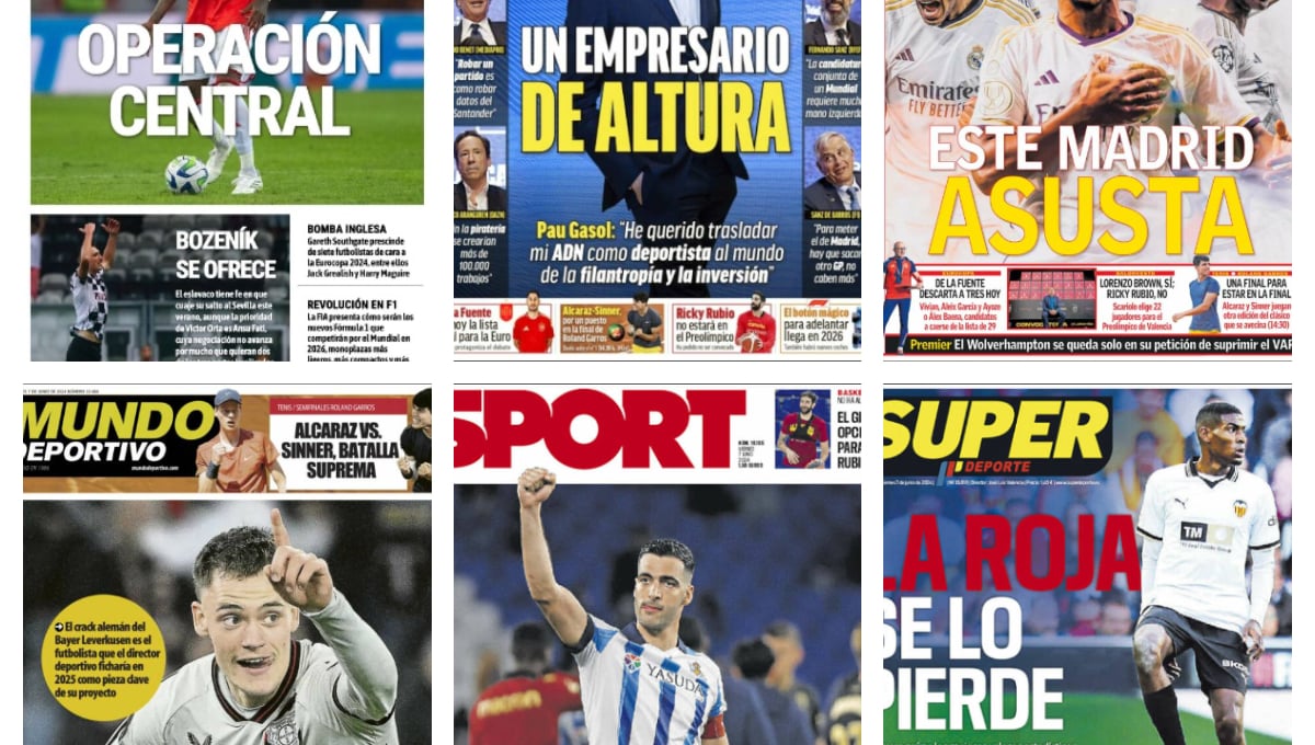 Las portadas de los diarios deportivos están protagonizadas por el inicio de la segunda era galáctica del Real Madrid, con Kylian Mbappé como bandera de esta nueva generación, y los fichajes que quiere realizar el FC Barcelona para el centro del campo, con Mikel Merino y Wirtz como los preferidos del área deportiva