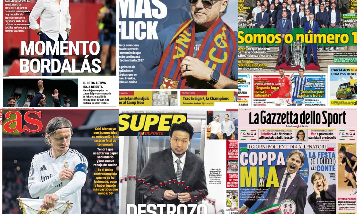 La llegada de Bordalás al banquillo del Sevilla, la última renovación de Modric con el Real Madrid o la continuidad de Hansi Flick en el banquillo del Barcelona copan las portadas de la prensa deportiva del 20 de mayo