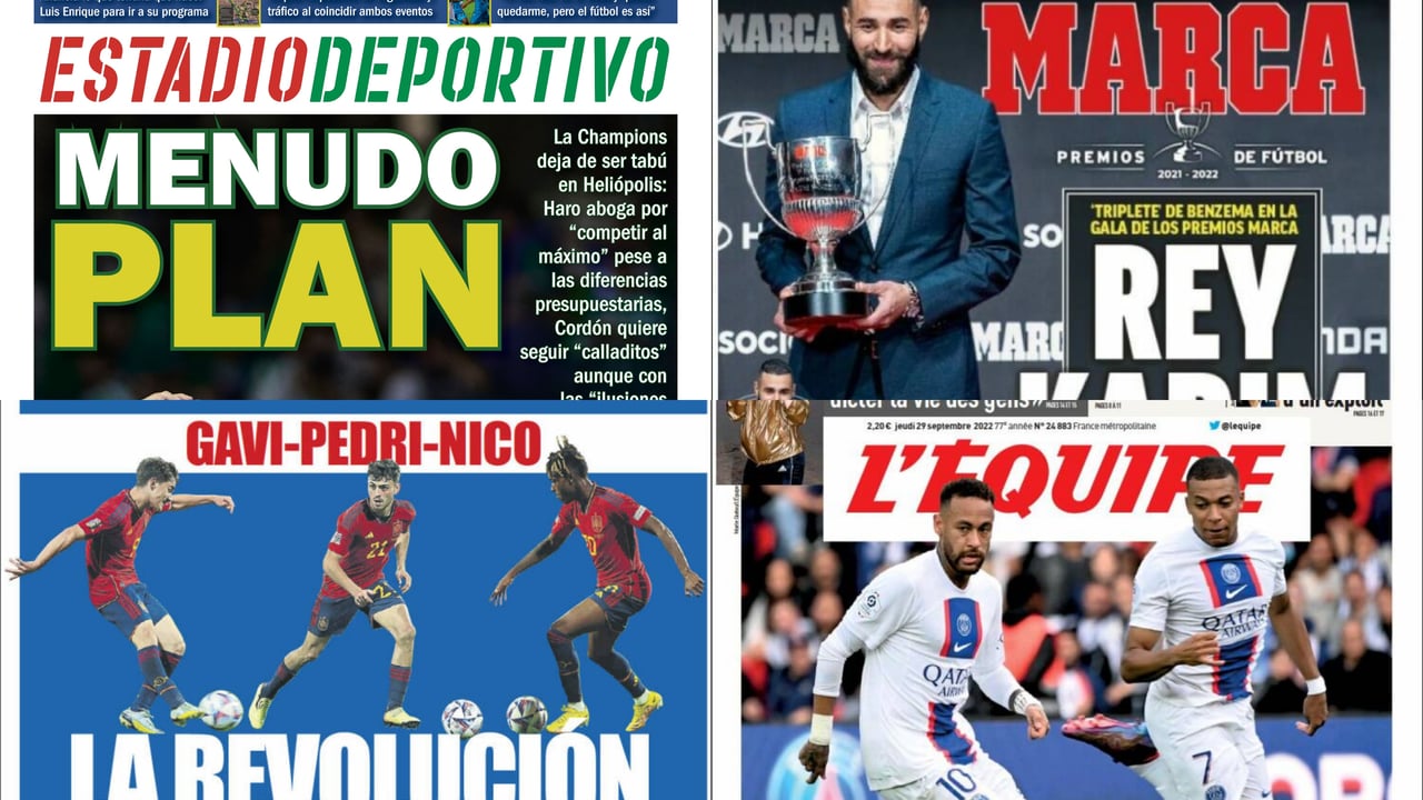 Las portadas de la prensa deportiva de este jueves 29 de septiembre llegan con muchísima y variada información que dejó el día de ayer como el plan que maneja el Betis para la presente temporada y del que todos los actores hablan sin tapujos. La Champions deja de ser tabú en Heliópolis: Haro aboga por "competir al máximo" pese a las diferencias presupuestarias, Cordón quiere seguir "calladitos" pero con "ilusiones altas" y, ahora, Pellegrini hace una promesa: "No es fácil, pero lo vamos a intentar".