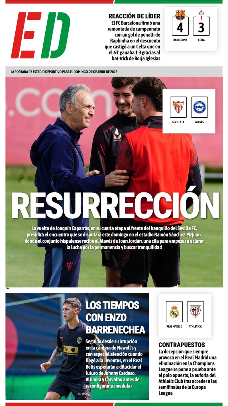 La portada de ESTADIO Deportivo para el domingo 20 de abril de 2025: