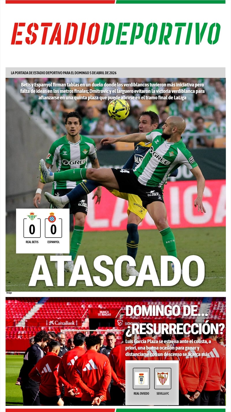 La portada de ESTADIO Deportivo para el domingo 5 de abril de 2026: