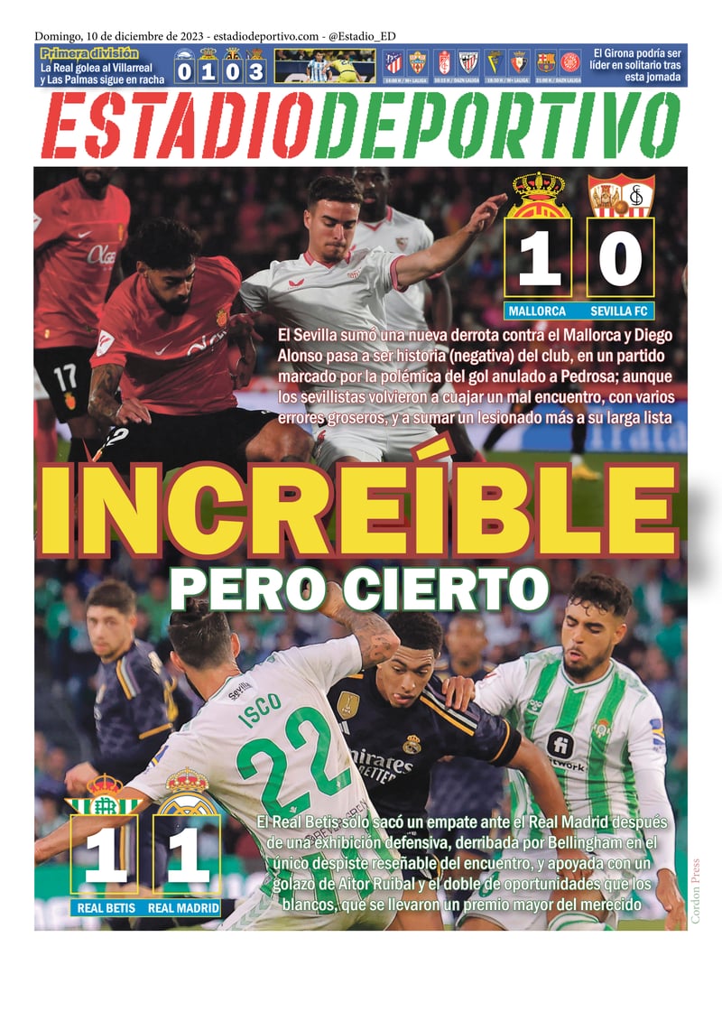 La portada de ESTADIO Deportivo para el domingo 10 de diciembre de 2023: