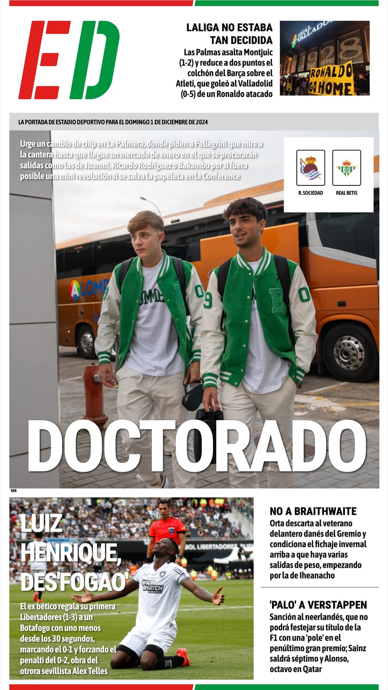 La portada de ESTADIO Deportivo para el domingo 1 de diciembre de 2024: