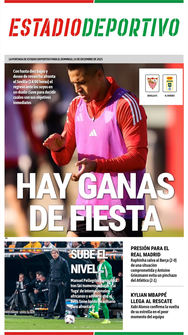 La portada de ESTADIO Deportivo para el domingo 14 de diciembre de 2025