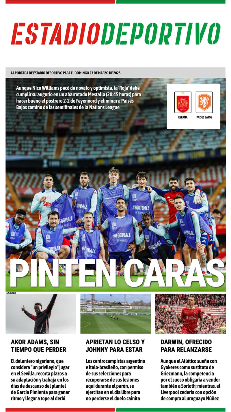 La portada de ESTADIO Deportivo para el domingo 23 de marzo de 2025: