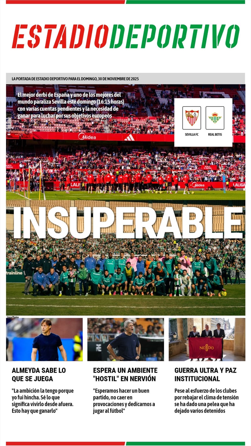 La portada de ESTADIO Deportivo para el domingo 30 de noviembre de 2025