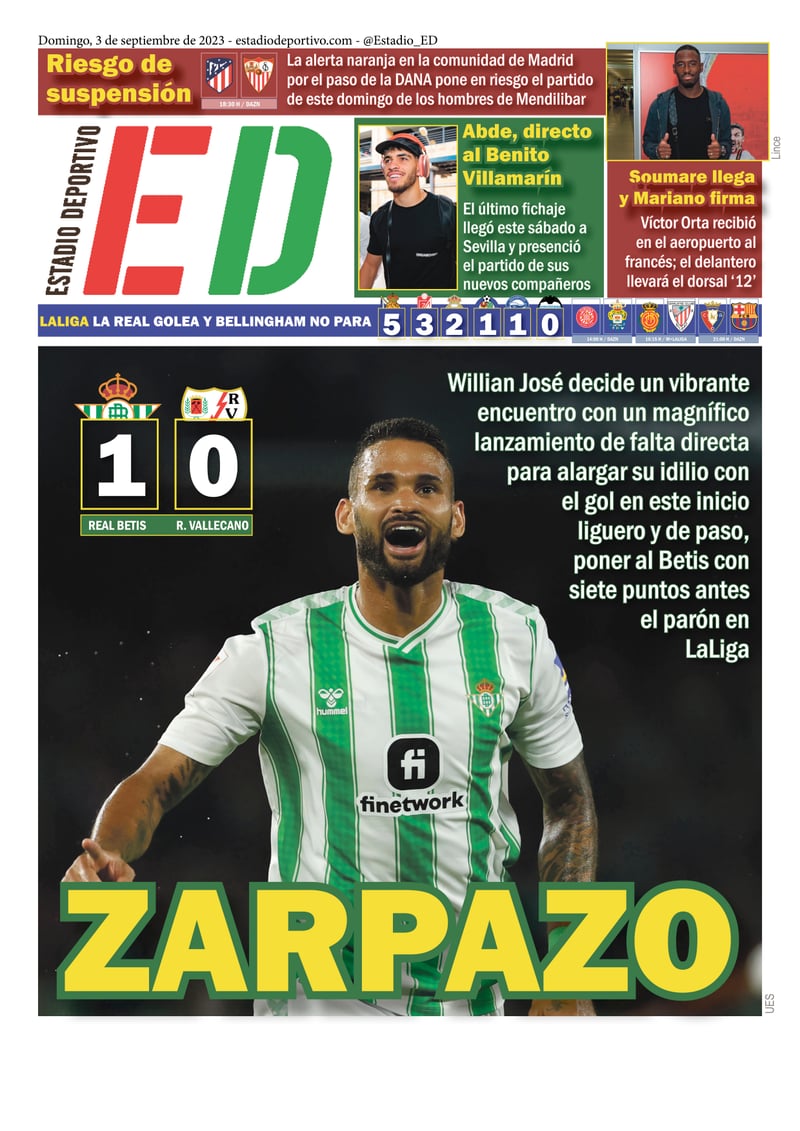 La portada de ESTADIO Deportivo para el domingo 3 de septiembre de 2023