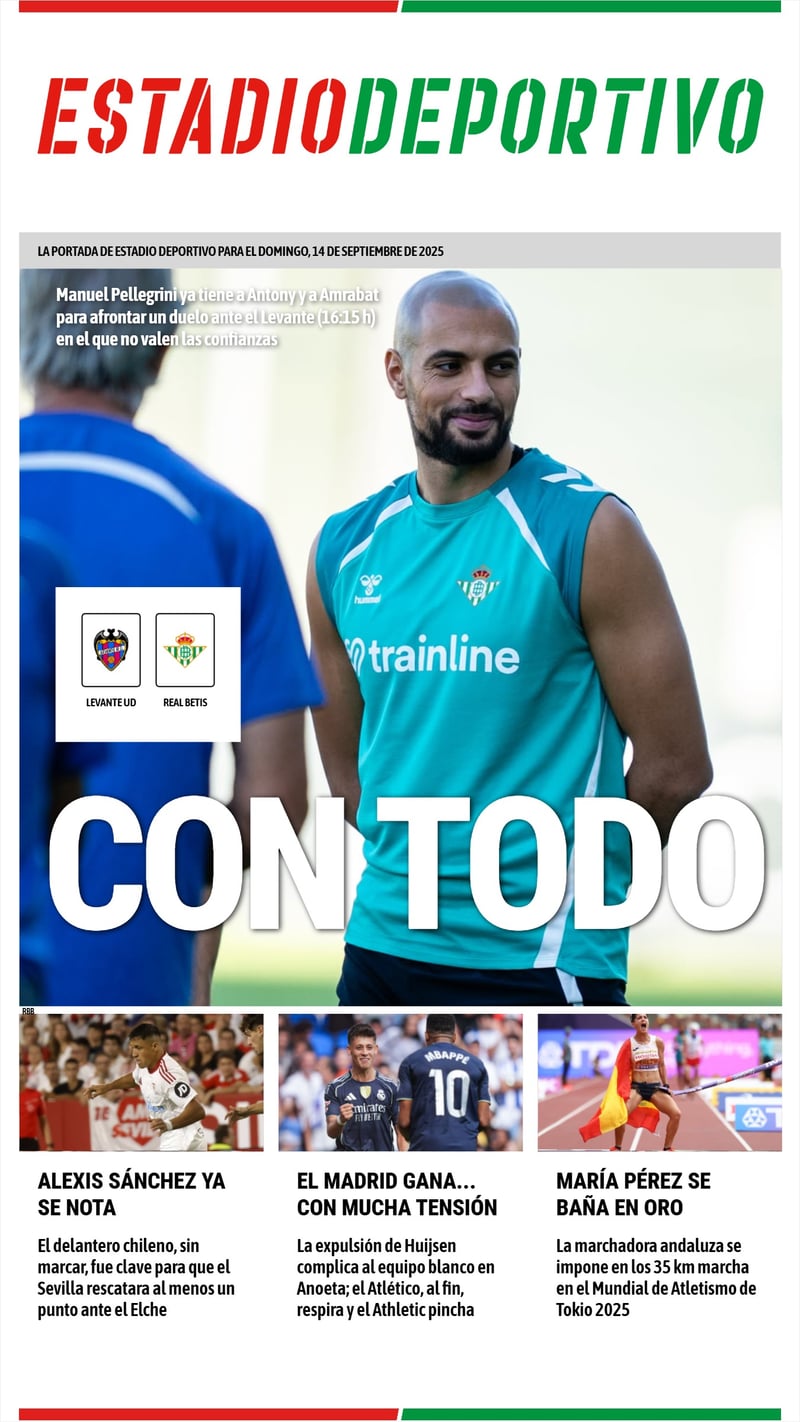 La portada de ESTADIO Deportivo para el domingo 14 de septiembre de 2025