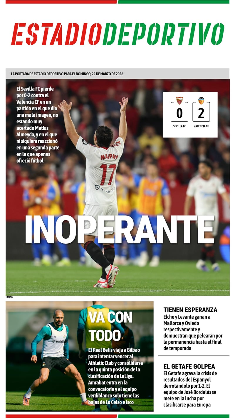 La portada de ESTADIO Deportivo para este domingo 22 de marzo de 2026.IMAGO
