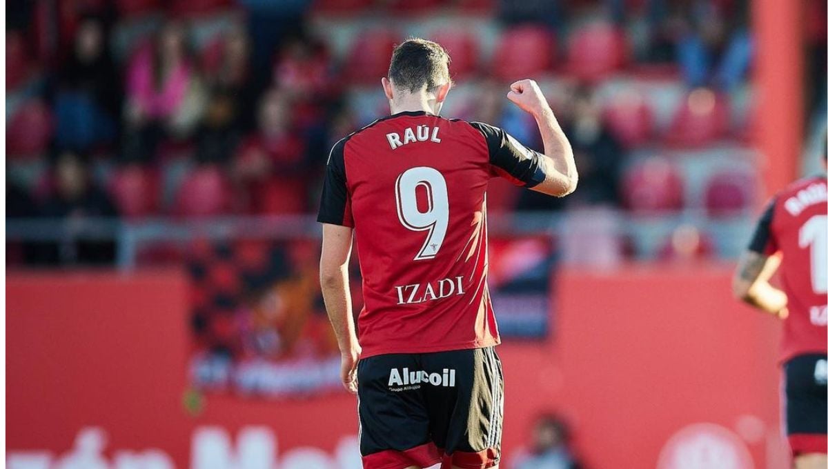 Raúl García de Haro celebra un gol con el Mirandés.@raulgdh9