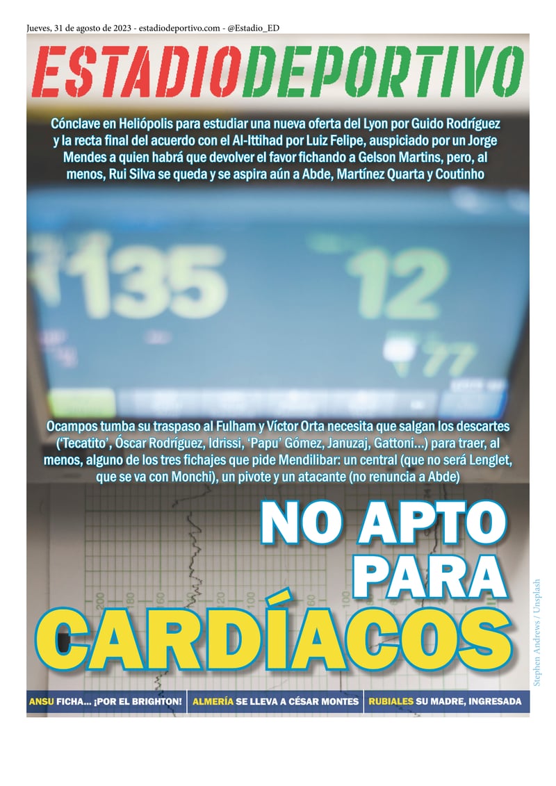 La portada de ESTADIO Deportivo para el jueves 31 de agosto de 2023:
