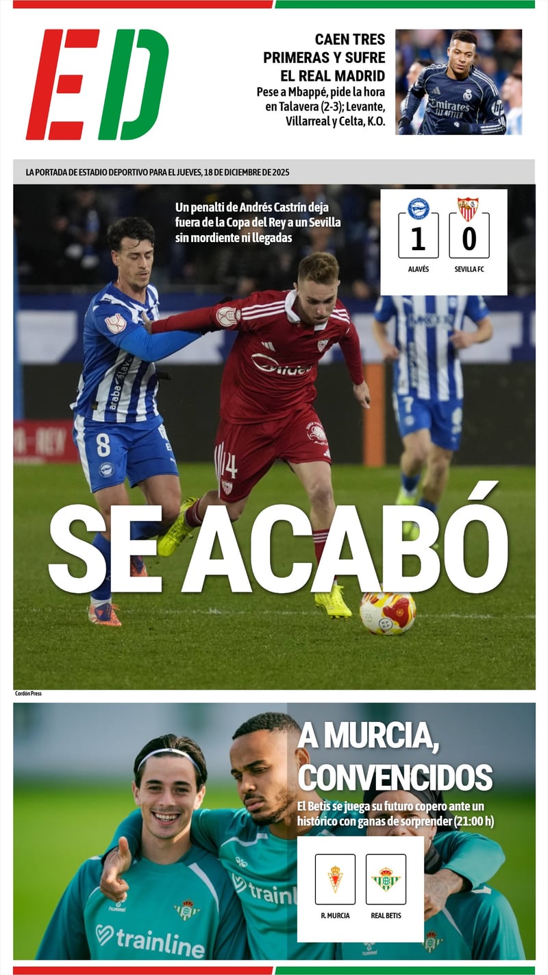 La portada de ESTADIO Deportivo para el jueves 18 de diciembre de 2025