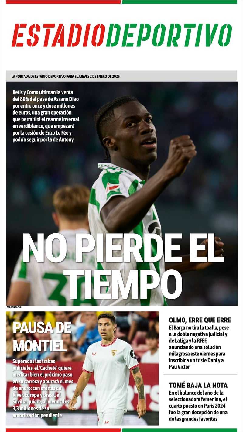 La portada de ESTADIO Deportivo para el jueves 2 de enero de 2025: