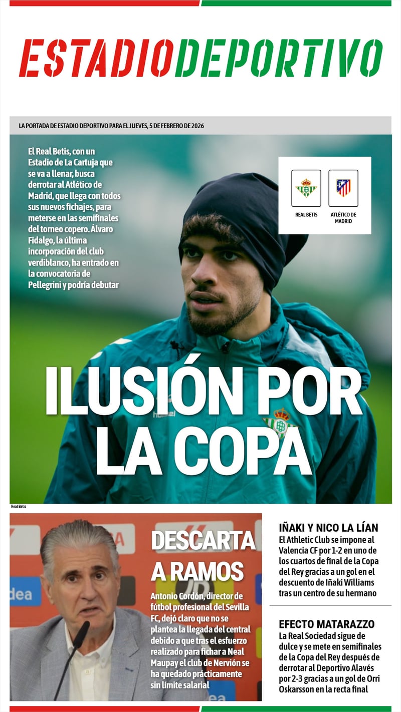 La portada de ESTADIO Deportivo para este jueves 5 de enero de 2026.@RealBetis