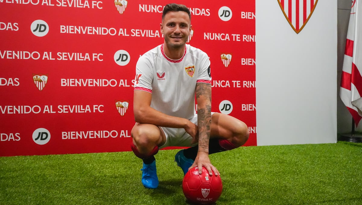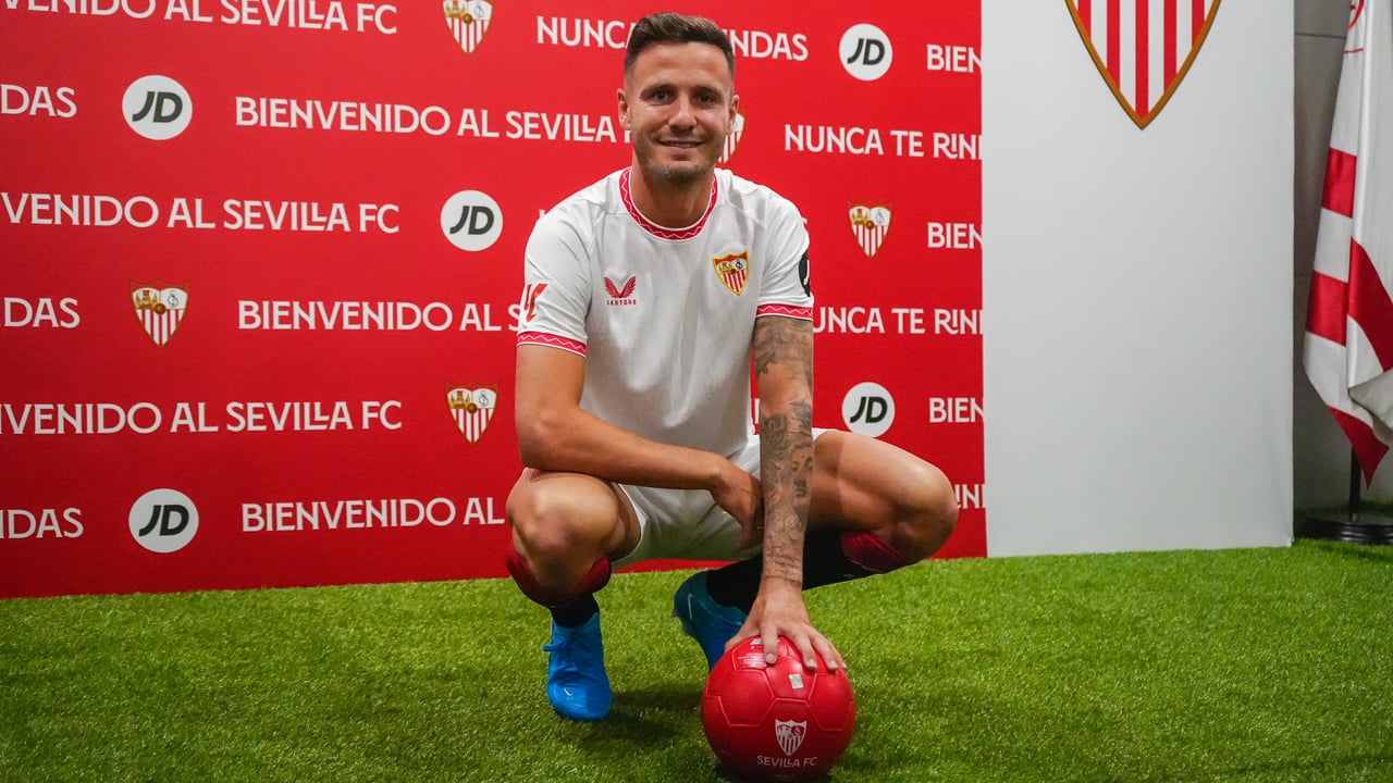 Saúl Ñíguez posa como futbolista del Sevilla y este miércoles ya se ejercitó a las órdenes de García Pimienta.Lince