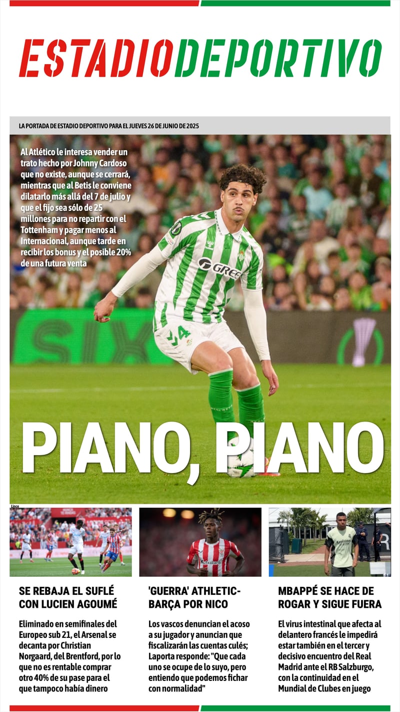 La portada de ESTADIO Deportivo para el jueves 26 de junio de 2025: