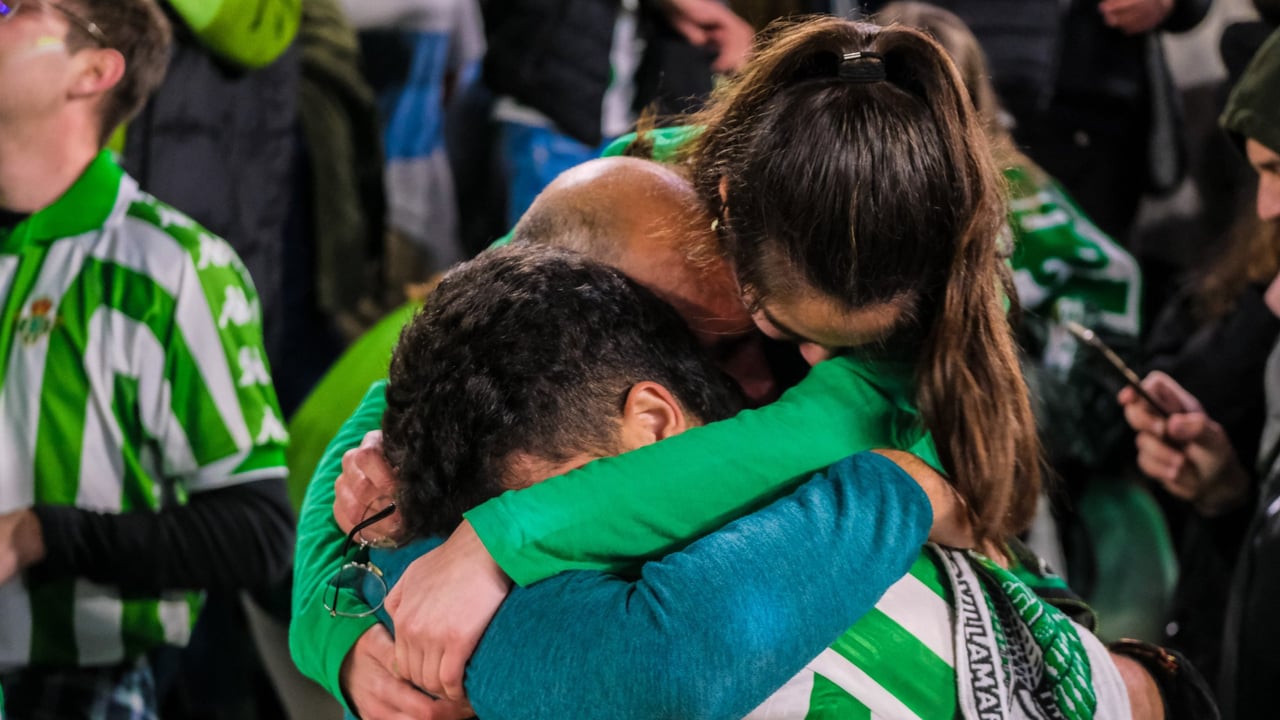 Un abrazo de fe en las gradas del Estadio de La Cartuja.RBB