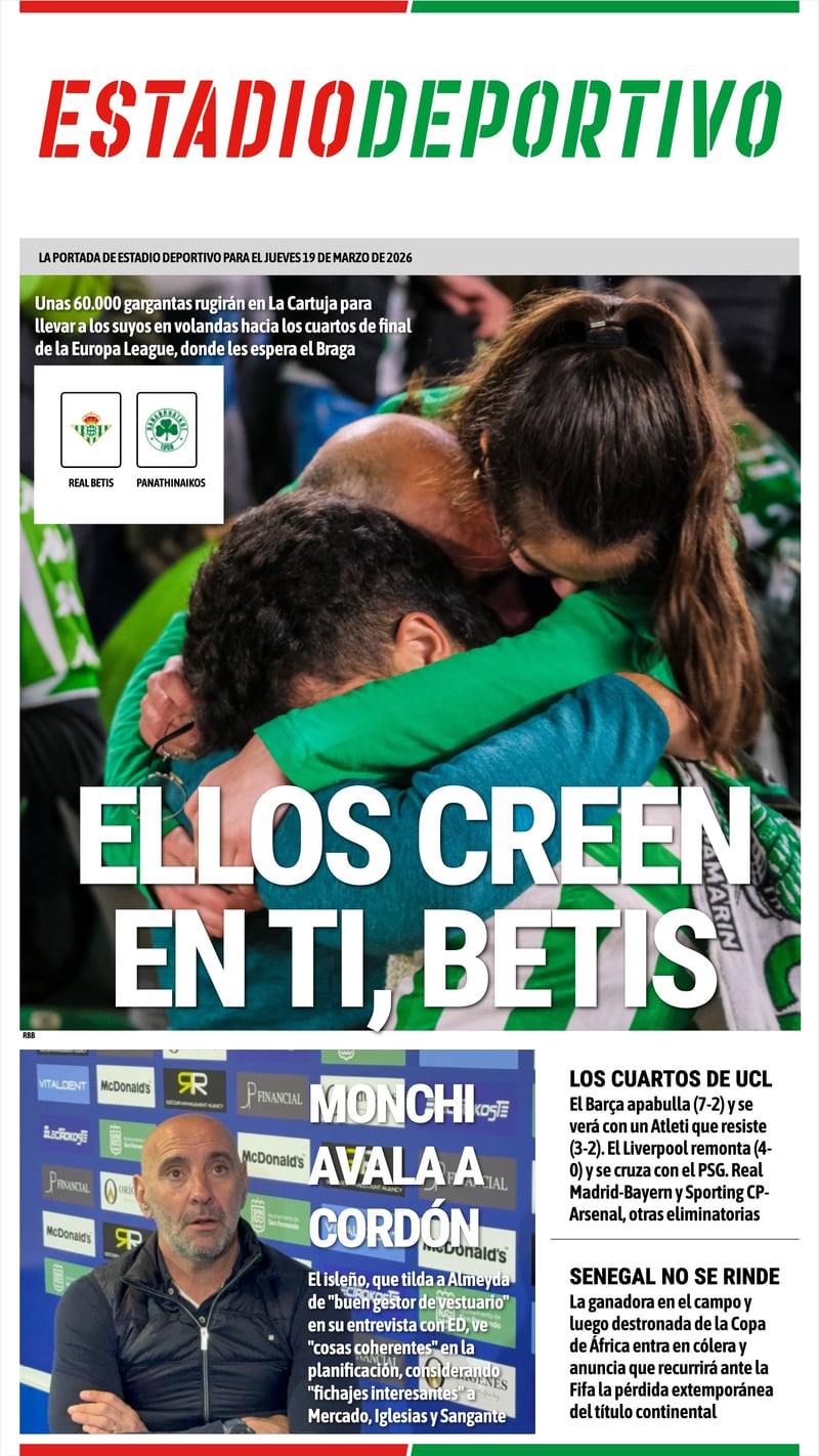 La portada de ESTADIO Deportivo para el jueves 19 de marzo de 2026: