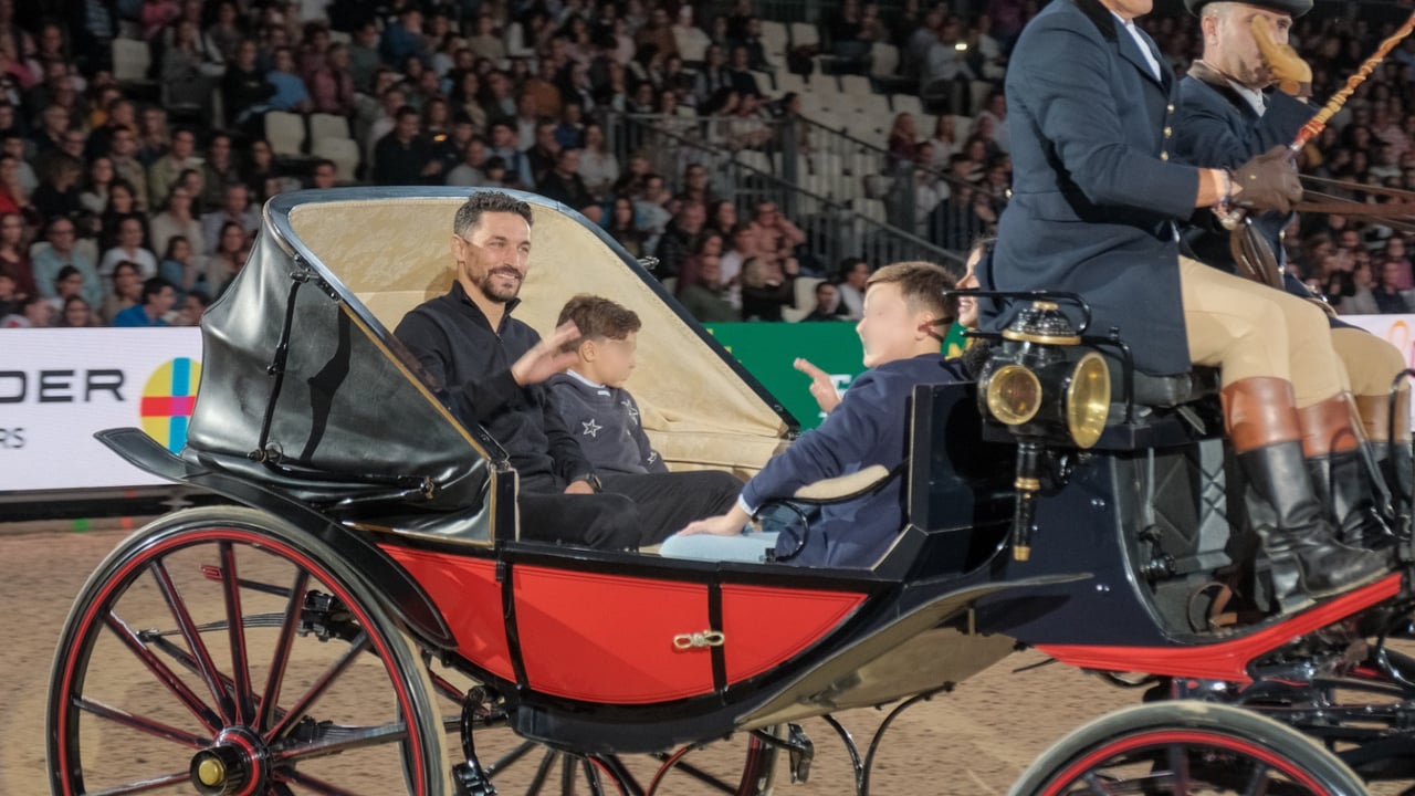 El palaciego, en coche de caballos este miércoles con su familia.Lince