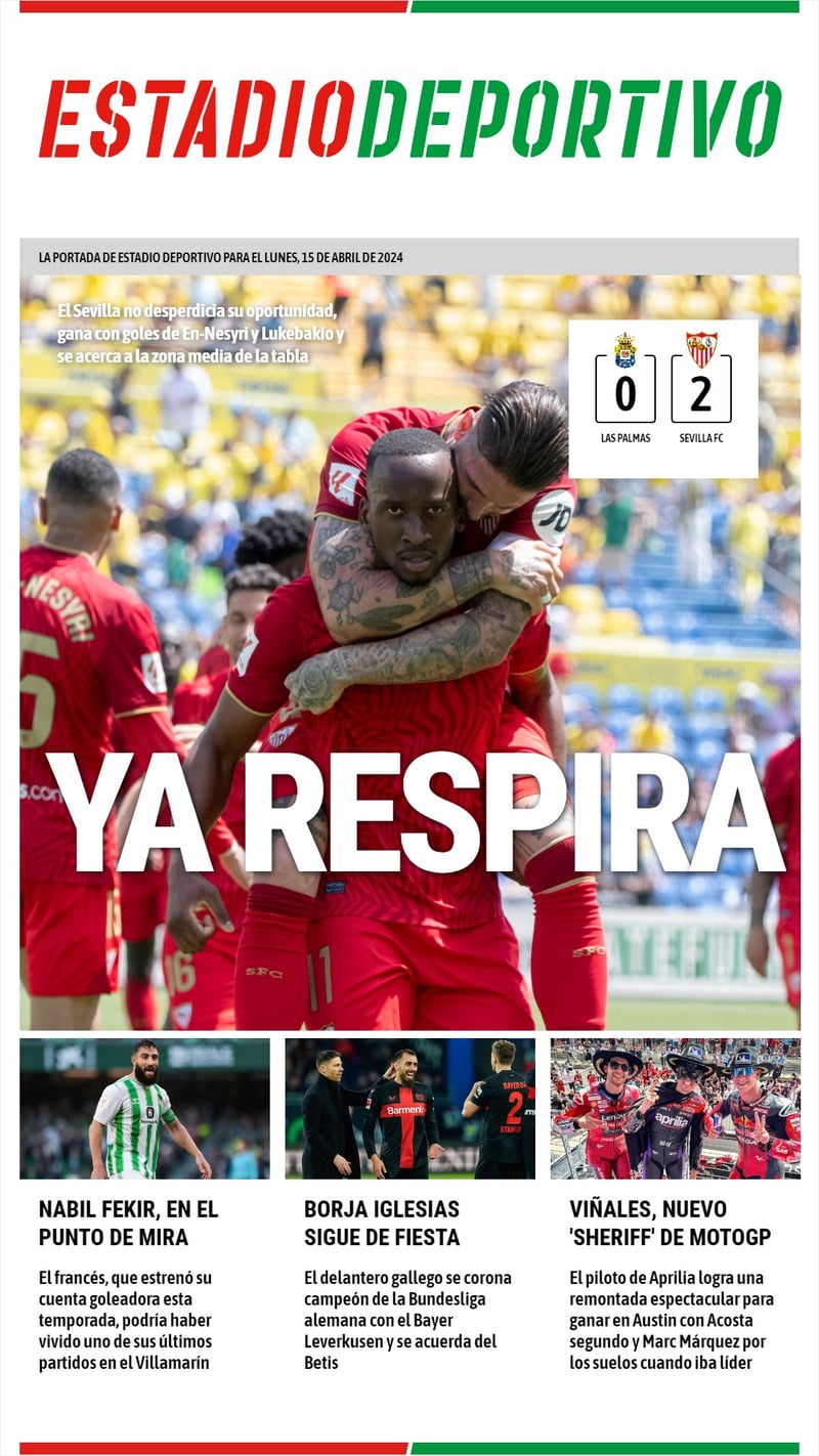 La portada de ESTADIO Deportivo para el lunes 15 de abril de 2024