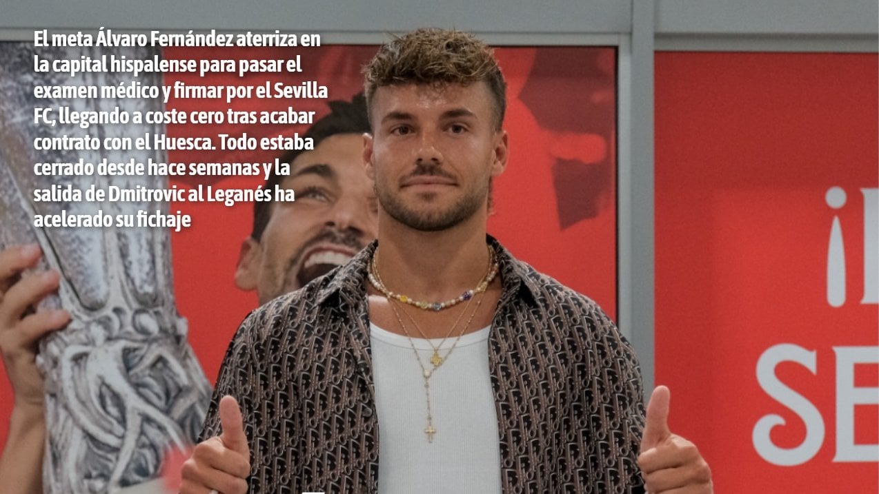 EL SÉPTIMO DE ORTA: Hasta el día 30 de agosto, a Víctor Orta le queda mucho trabajo por delante para tratar de solventar las carencias de un equipo especialmente débil en defensa, por lo que la prioridad pasa por reforzar el eje de la zaga. Antes de ello, sin embargo, este domingo, pasadas las 21:30 horas, ha aterrizado en la capital hispalense el séptimo fichaje nervionense para la 23/24, que llega para apuntalar la portería.