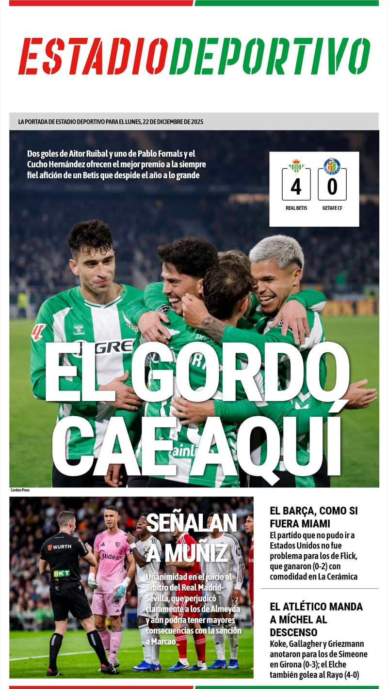 La portada de ESTADIO Deportivo para el lunes 22 de diciembre de 2025