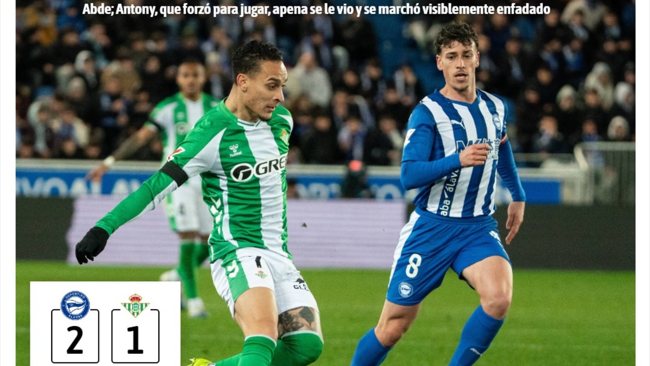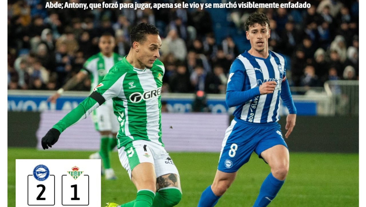 El Real Betis mostró su versión más débil en Mendizorroza, pagó cara su falta de intensidad al comienzo de la primera y segunda parte y solo logró maquillar el resultado en el 95' con el gol de Abde; Antony, que forzó para jugar, apena se le vio y se marchó visiblemente enfadado.