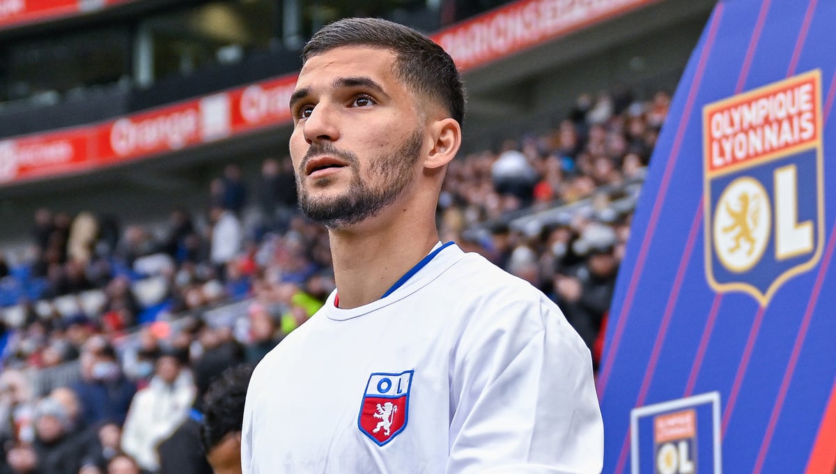 Houssem Aouar, antes de un partido con el Lyon.OL
