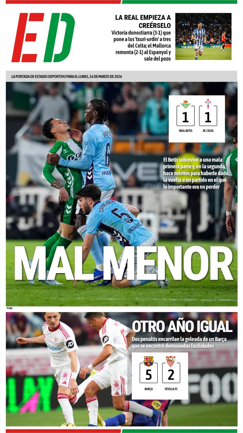La portada de ESTADIO Deportivo para el lunes 16 de marzo de 2026