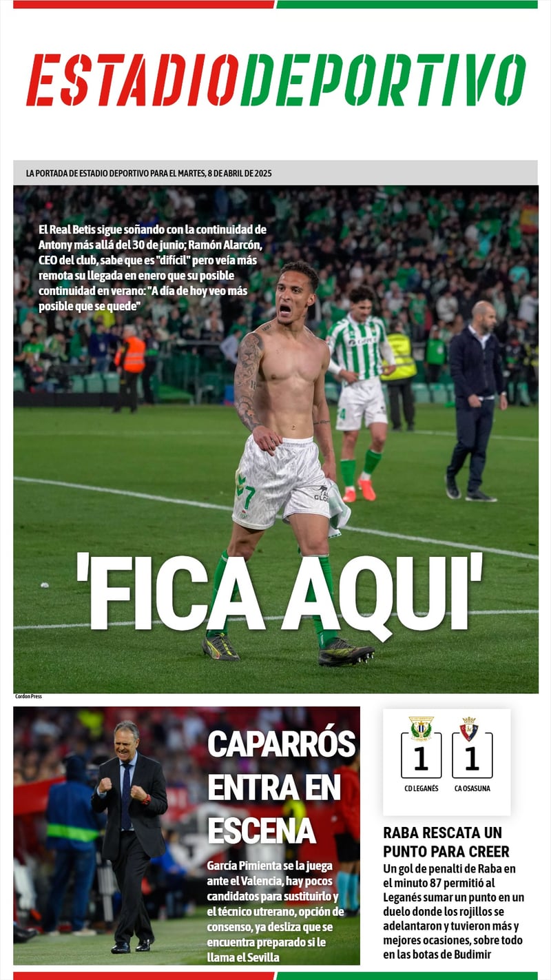 La portada de ESTADIO Deportivo para el martes 8 de abril de 2025: