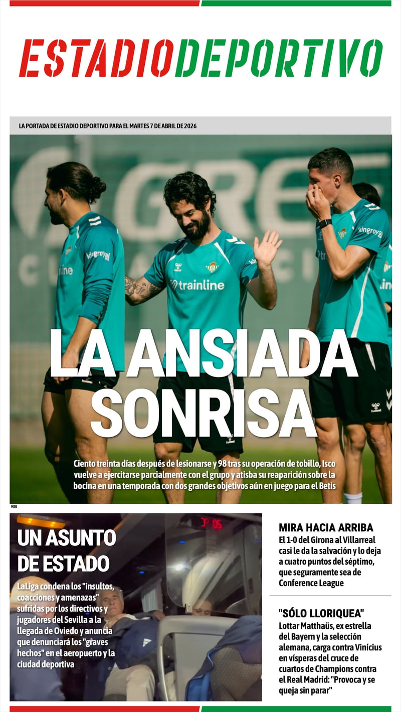 La portada de ESTADIO Deportivo para el martes 7 de abril de 2026: