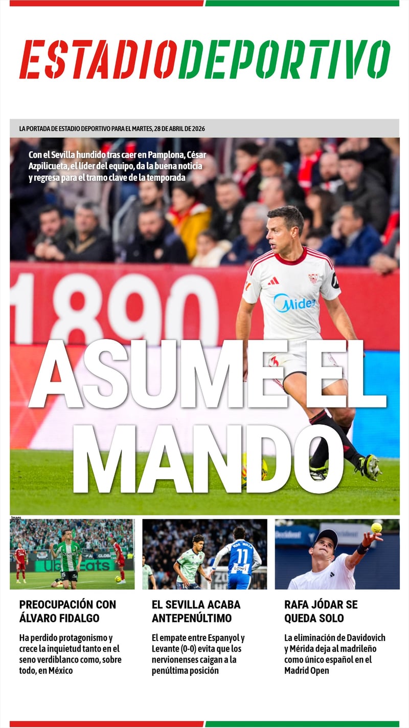 La portada de ESTADIO Deportivo para el martes 28 de abril de 2026
