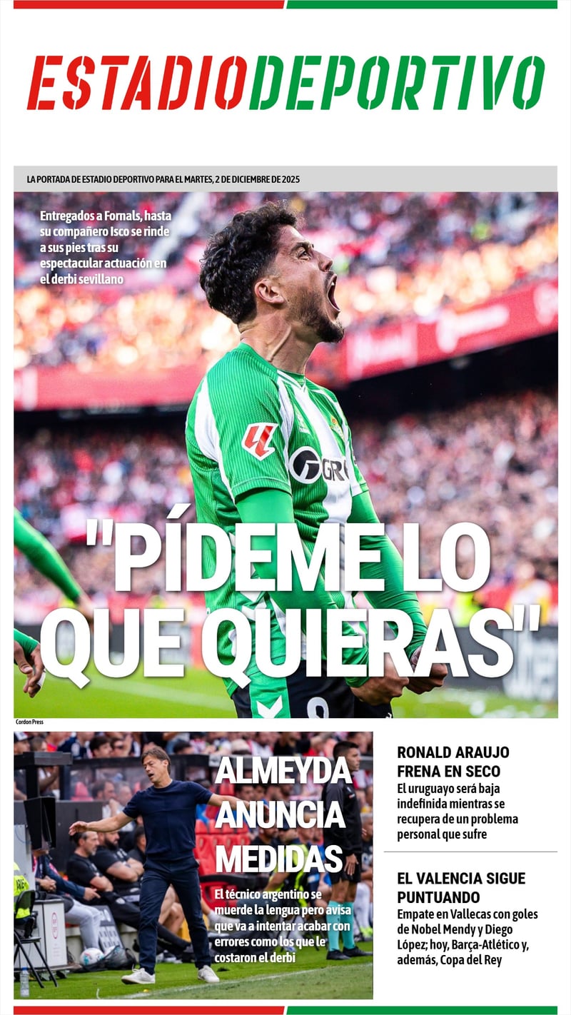 La portada de ESTADIO Deportivo para el martes 2 de diciembre de 2025
