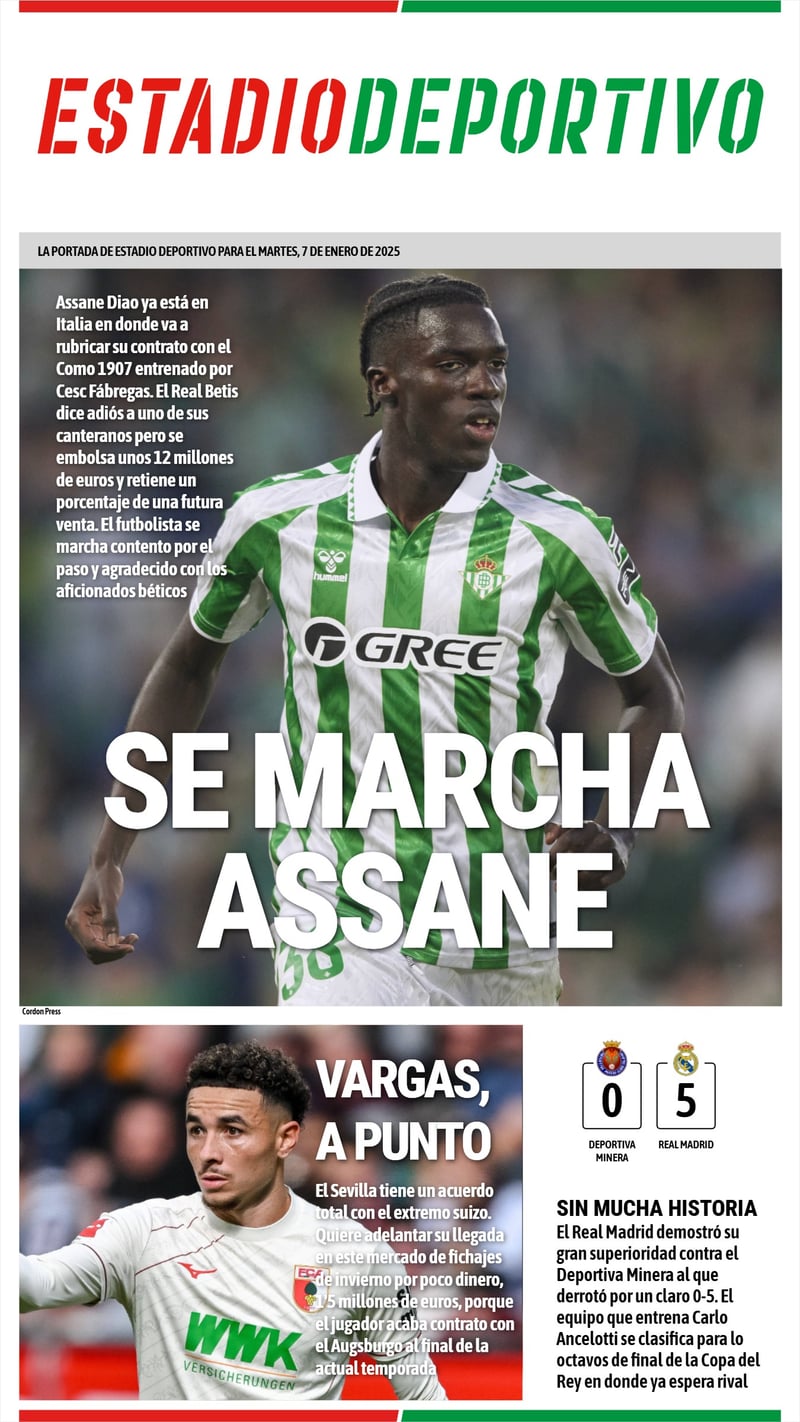 La portada de ESTADIO Deportivo para el martes 7 de enero de 2025