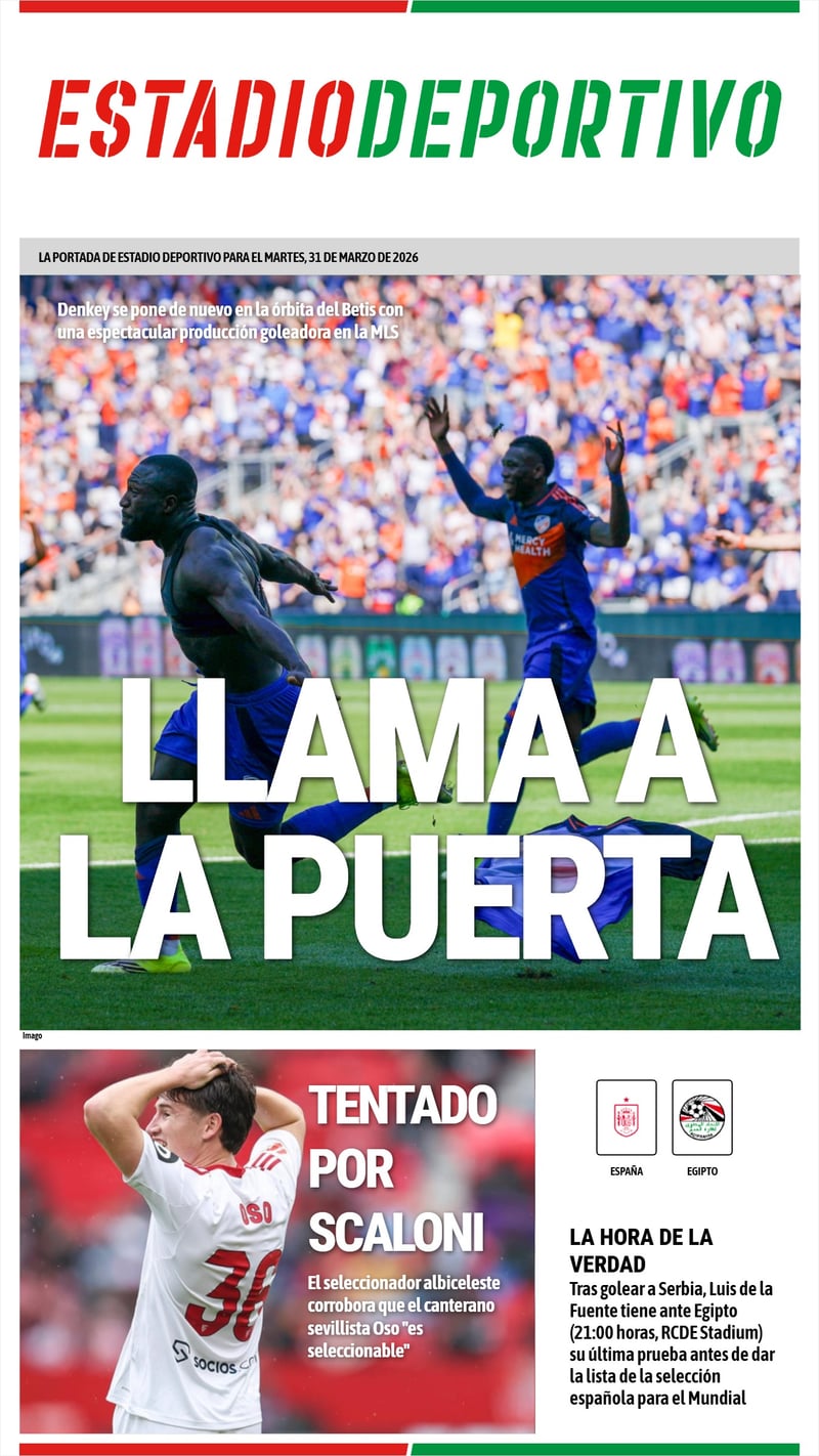La portada de ESTADIO Deportivo para el martes, 31 de marzo de 2026
