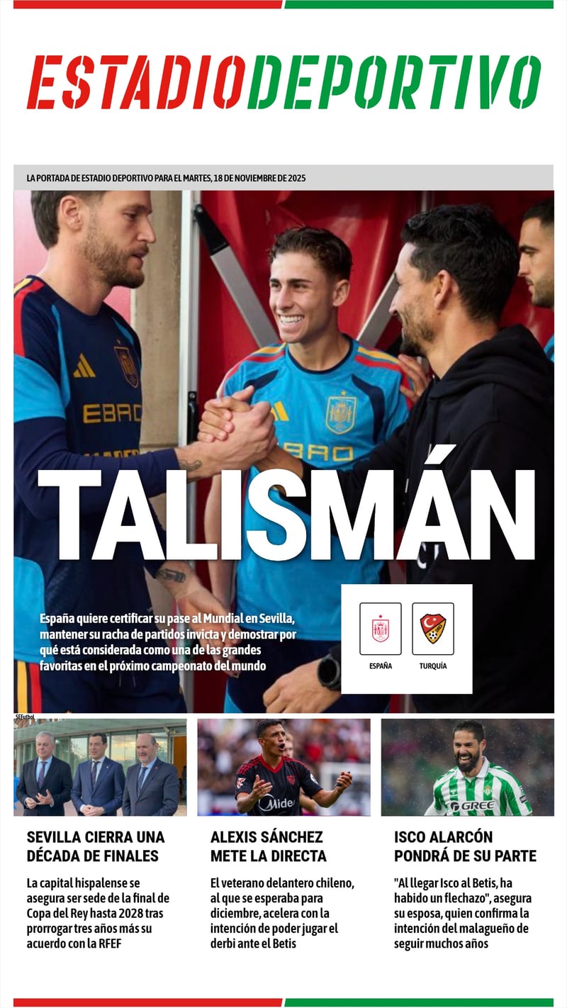 La portada de ESTADIO Deportivo para el martes, 18 de noviembre de 2025