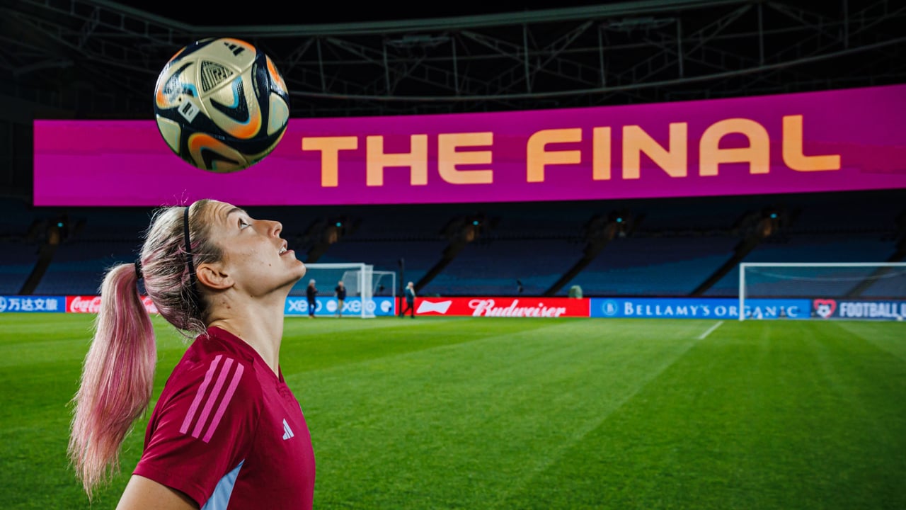 Alexia Putellas, abanderada de las protestas como mejor jugadora del orbe en las últimas temporadas, juega con el balón en visperas de la final del Mundial 2023.@SeFutbolFem