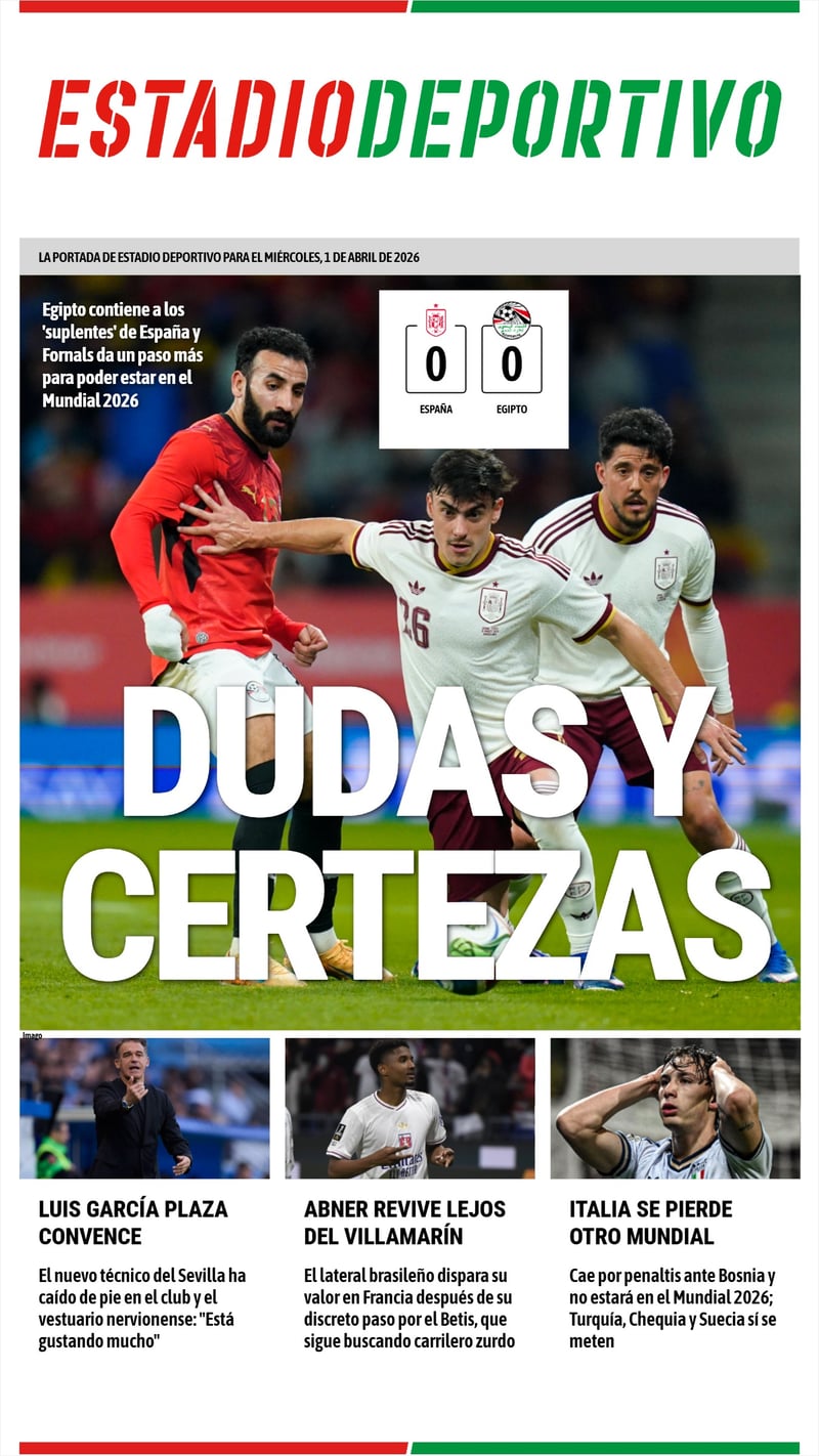 La portada de ESTADIO Deportivo para el miércoles, 1 de abril de 2026