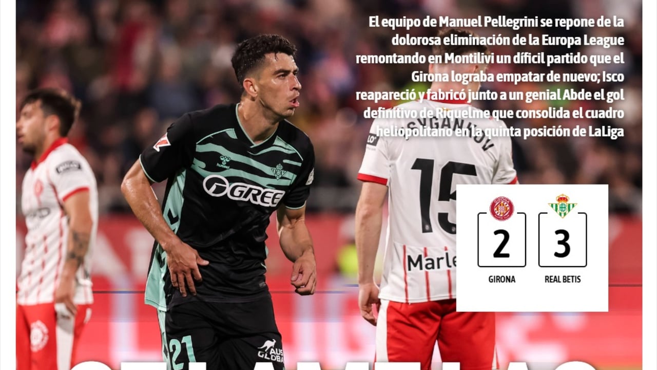 El Betis remonta en Montilivi y se afianza en la quinta posición de LaLiga; Sergio Ramos, optimista con la compra del Sevilla