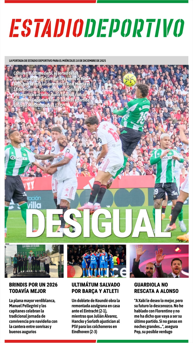 La portada de ESTADIO Deportivo para el miércoles 10 de diciembre de 2025: