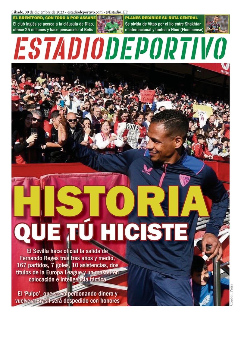 Fernando Reges, ya exjugador del Sevilla FC; Assane Diao, con una mareante oferta para irse a la Premier League; y Nino, central del Fluminense que se abre paso en la agenda del Real Betis, protagonistas de la primera página de ED