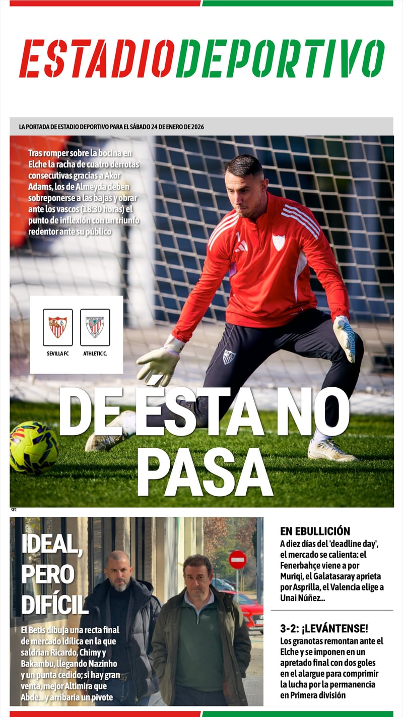 La portada de ESTADIO Deportivo para el sábado 24 de enero de 2026:
