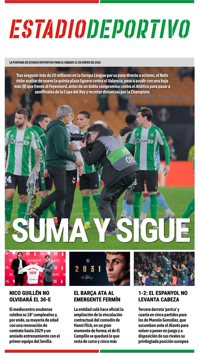 La portada de ESTADIO Deportivo para el sábado 31 de enero de 2026: