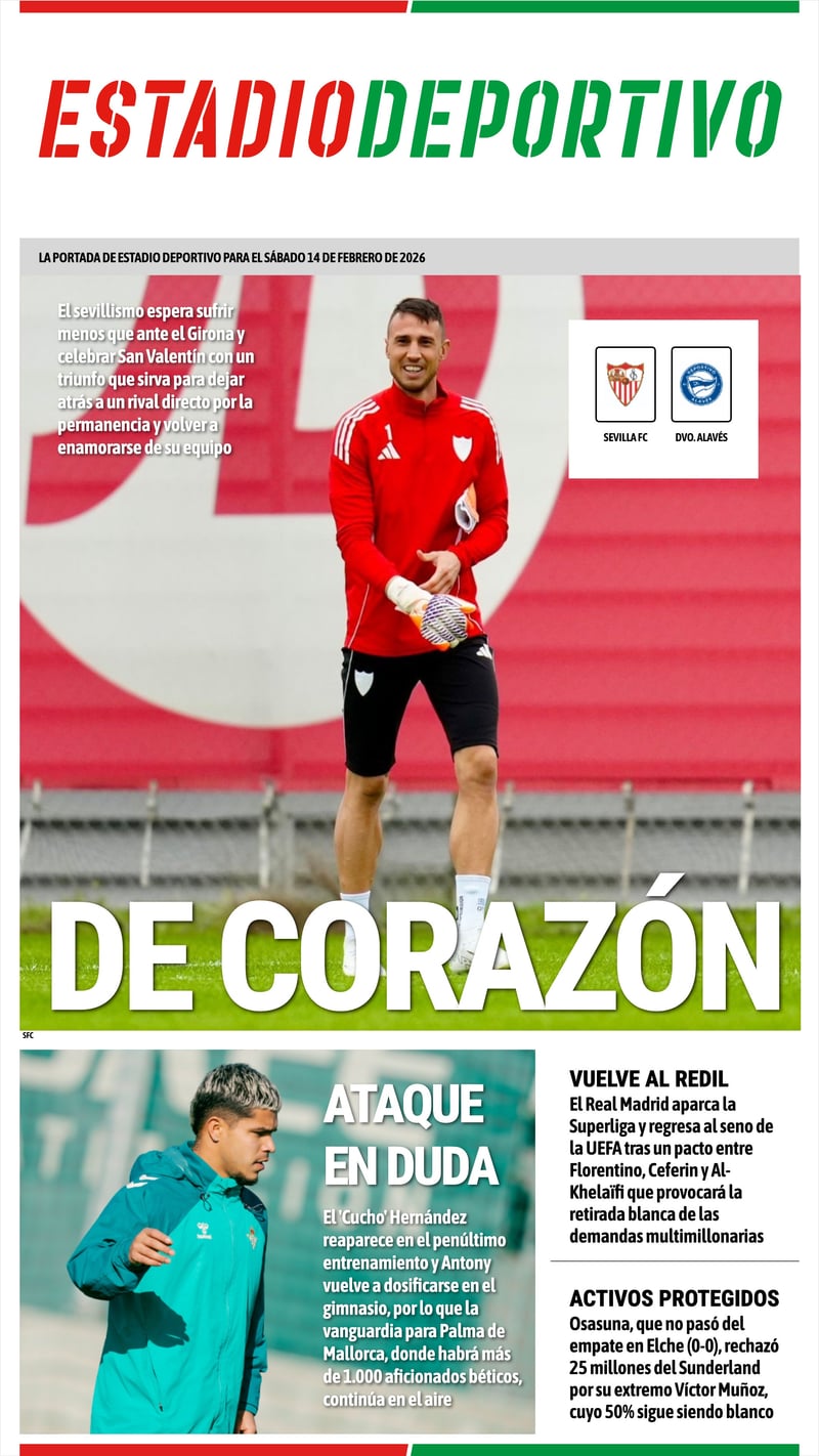 La portada de ESTADIO Deportivo para el sábado 14 de febrero de 2026: