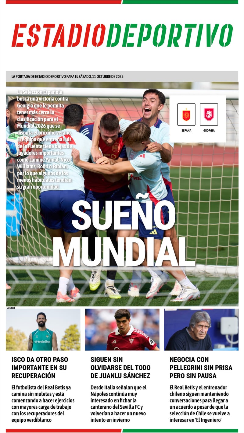 La Selección Española busca la victoria contra Georgia para tener más cerca la clasificación para jugar el Mundial 2026, mientras que en el Real Betis la recuperación de Isco va por buen camino y en el Sevilla FC vuelve a mirar de reojo al Nápoles que sigue interesado en Juanlu