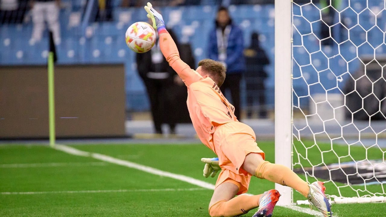Una de las dos paradas de Ter Stegen a los lanzadores béticos en Riad.RFEF