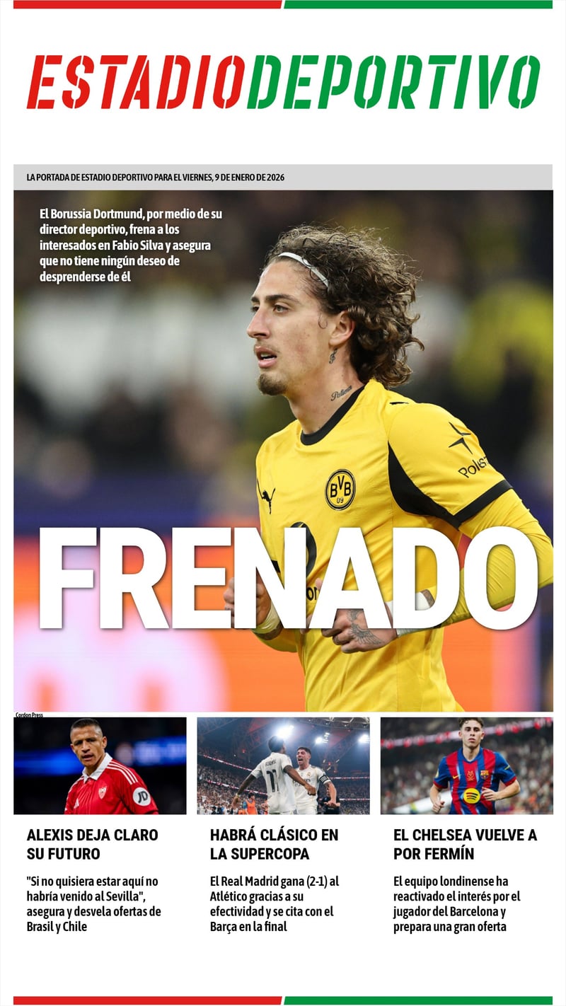 La portada de ESTADIO Deportivo para el viernes 9 de enero de 2026
